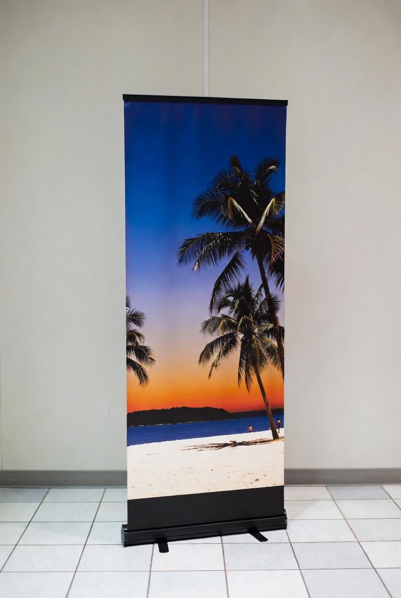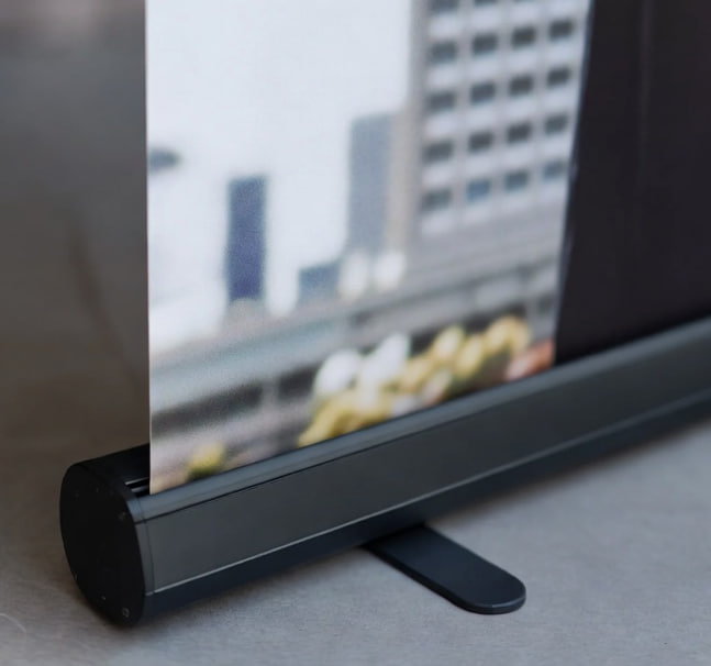 Roll-upy są łatwe w transporcie i przechowywaniu dzięki niewielkim rozmiarom po złożeniu.